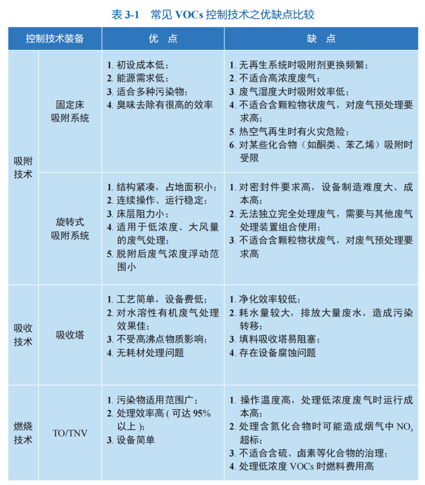 生態(tài)環(huán)境部大氣司《揮發(fā)性有機(jī)物治理實用手冊》中明確:實用的VOCs末端治理技術(shù)眾多,主要包括吸附、燃燒(高溫焚燒和 催化燃燒)、吸收、冷凝、生物處理及其組合技術(shù)。